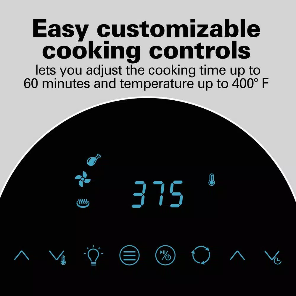 - Manually adjusting the time and temperature up to 60-minutes and 400°F