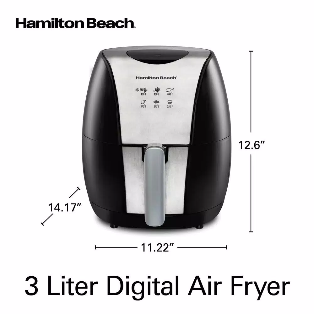 For fast cooking with little to no oil, nothing beats an air fryer. The Hamilton Beach 3 l Air Fryer is perfect for people who love food with a crispy finish. From French fries and potato wedges to chicken wings, steaks, baked goods and vegetables, the Hamilton Beach 3 l Air Fryer is the appliance to reach for when you want perfectly cooked food – and you want it fast. You’ll find yourself using the Hamilton Beach 3 l Air Fryer for everything from quick snacks and side dishes to family meals, since it cooks food faster than a traditional oven. Its 3 l capacity holds enough food for 2-4 people, and when the cooking cycle completes, the audible beep tells you when food is ready. After cooking, the removable nonstick basket makes cleanup easy.