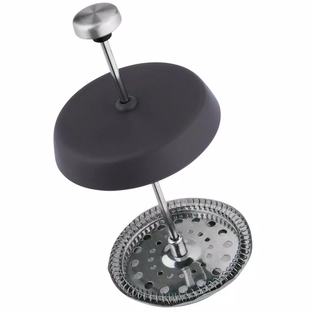 The BergHOFF French press is a cylindrical pot with a plunger and a built-in filter screen that presses hot water onto tea leaves or ground coffee. When you choose the French press to create a delicious cup of coffee or tea, youre sure youre using a reliable and consistent method thats ideal for making several cups in just a few minutes. Makes 0.85 quarts. Constructed of stainless steel with a glass carafe and is dishwasher safe. This French press is the perfect addition to any kitchen!