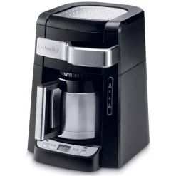 Are you tired of having to move your coffee maker in the morning to just add water and fill it with coffee? Never move your coffee maker again with the De’Longhi 10-Cup Thermal Carafe Drip Coffee Maker with Complete Front Access! Simply pull the handle on the front of the machine, and easily access the water channel and coffee filter. Once the coffee maker is ready to go, select the Aroma button if you prefer a more full bodied brew. It time-releases water to saturate coffee grounds a little at a time to extract a fuller flavor. To ensure the best flavor, the durable and long lasting gold-tone filter is specially designed to keep even the finest grounds out of your coffee. Once brewed, keep your coffee hot for hours with the double-walled thermal carafe. Use the 24-hour digital timer to program the precise moment you want to enjoy your morning jolt. Perfectly piping hot coffee should be poured into a warm mug for ideal taste and temperature. Take advantage of the built-in cup storage tray for warm, ready-to-use cups. Other highlights include pause and serve, water level indicator and cord storage. Enjoy coffee for years to come.