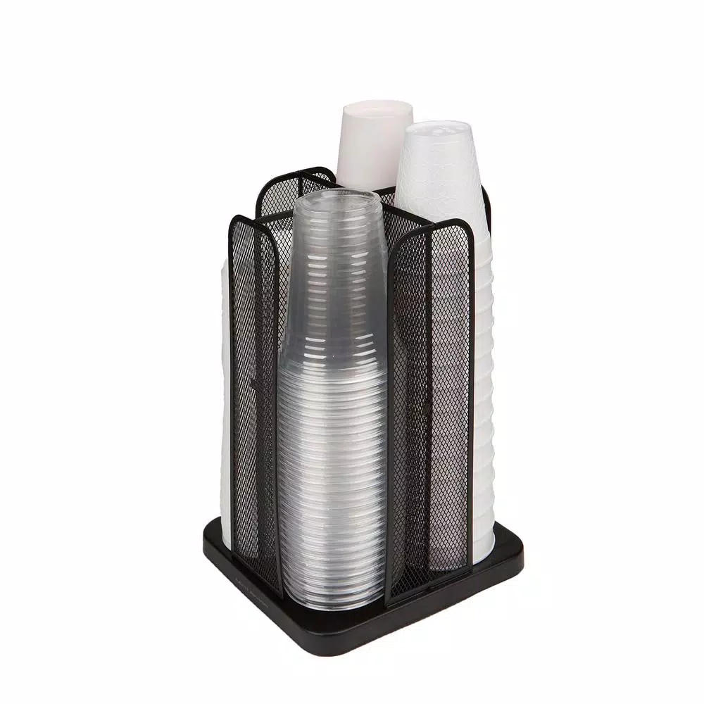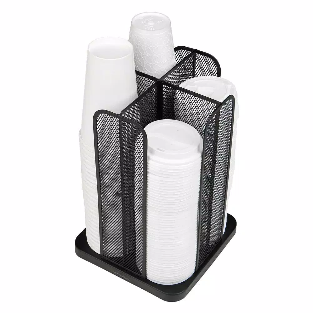 - EASY TO USE SPINNING CUP/LID CADDY : Revolving cup caddy features 4 compartments for stacking beverage cups and lids with easy access and restocking as needed.