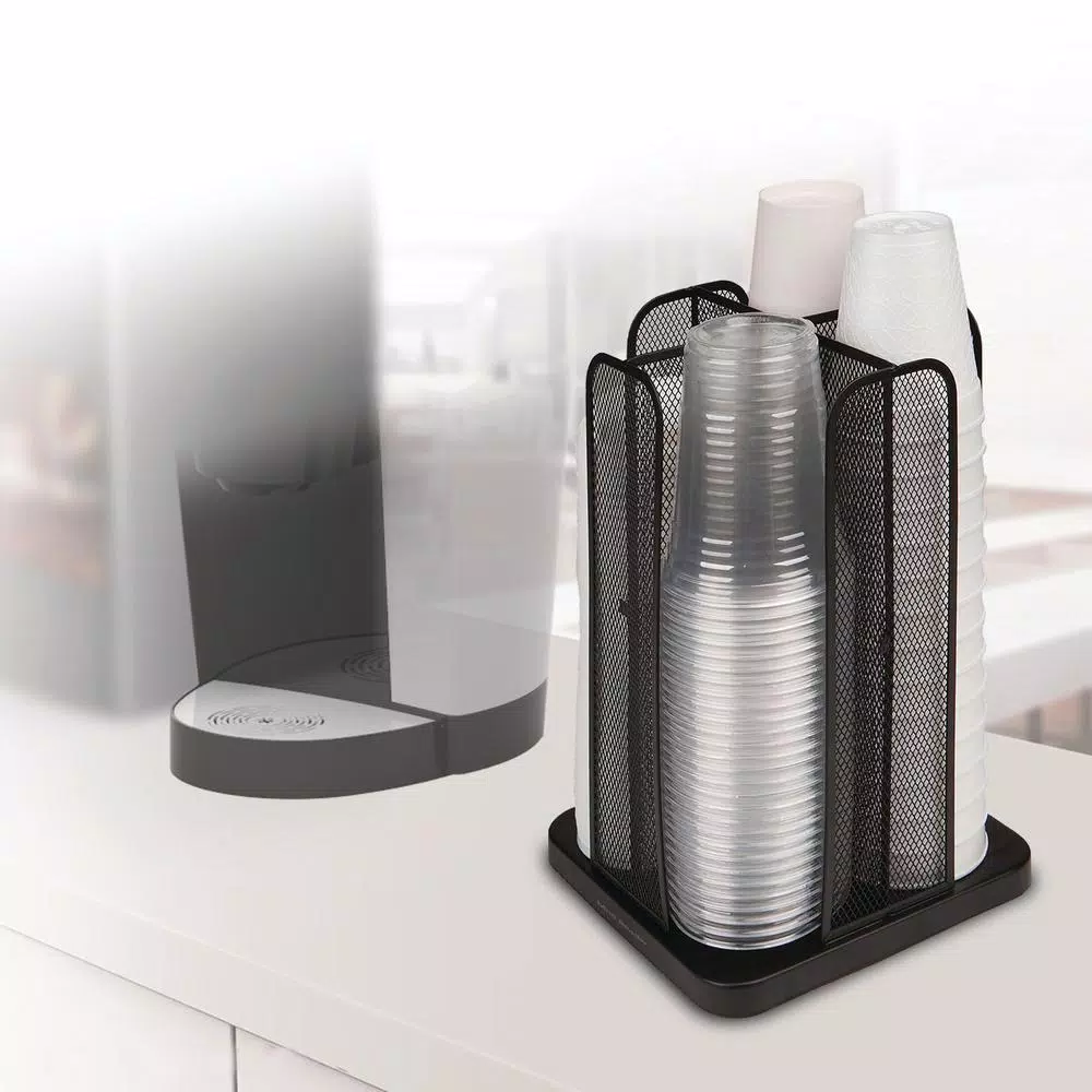 - ORGANIZER SPACESAVER CONVENIENCE: Make it easy for your kids, staff and patrons to access disposable coffee and beverage cups and lids with this vertical space saving cup and lid storage organizer.
