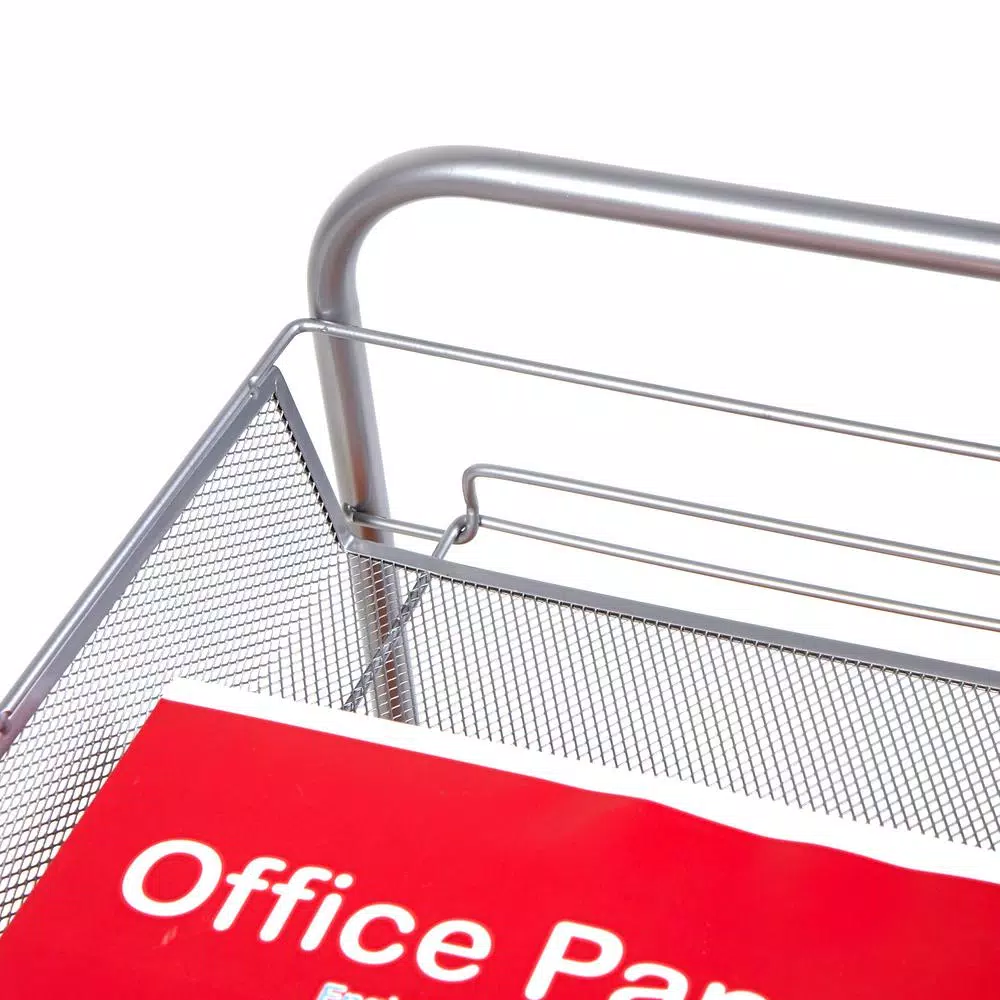 A multi-tier rolling cart designed to take your storage solutions to the next level. Elevate your storage solutions with this uniquely styled rolling supply cart. Designed to hold substantial supplies without allowing them to spill or fall over the sides, the deep mesh baskets on each level provide ample storage space while allowing you to still view the contents on each level clearly. Say goodbye to tacky plastic storage units, and replace them with a rolling cart that’s built to last. The unobtrusive design blends in seamlessly at home, at the office, or even in the classroom, and can easily be tucked away under your desk when not in use, or to provide easy access storage for your office supplies. The 360° omnidirectional casters at the bottom provide a full range of motion, so you can comfortably wheel this cart around, even navigating tight corners with ease. The cart itself is constructed from premium steel and wire mesh, with enough clearance between tiers to allow for storage and transportation of office supplies, hair products, fitness gear, or anything else you might need to store. The raised sides of the storage baskets ensure that your essentials won’t spill across the floor in transit. Its slim profile and small height make it great for use in your kitchen, laundry room, playroom, or at the office.