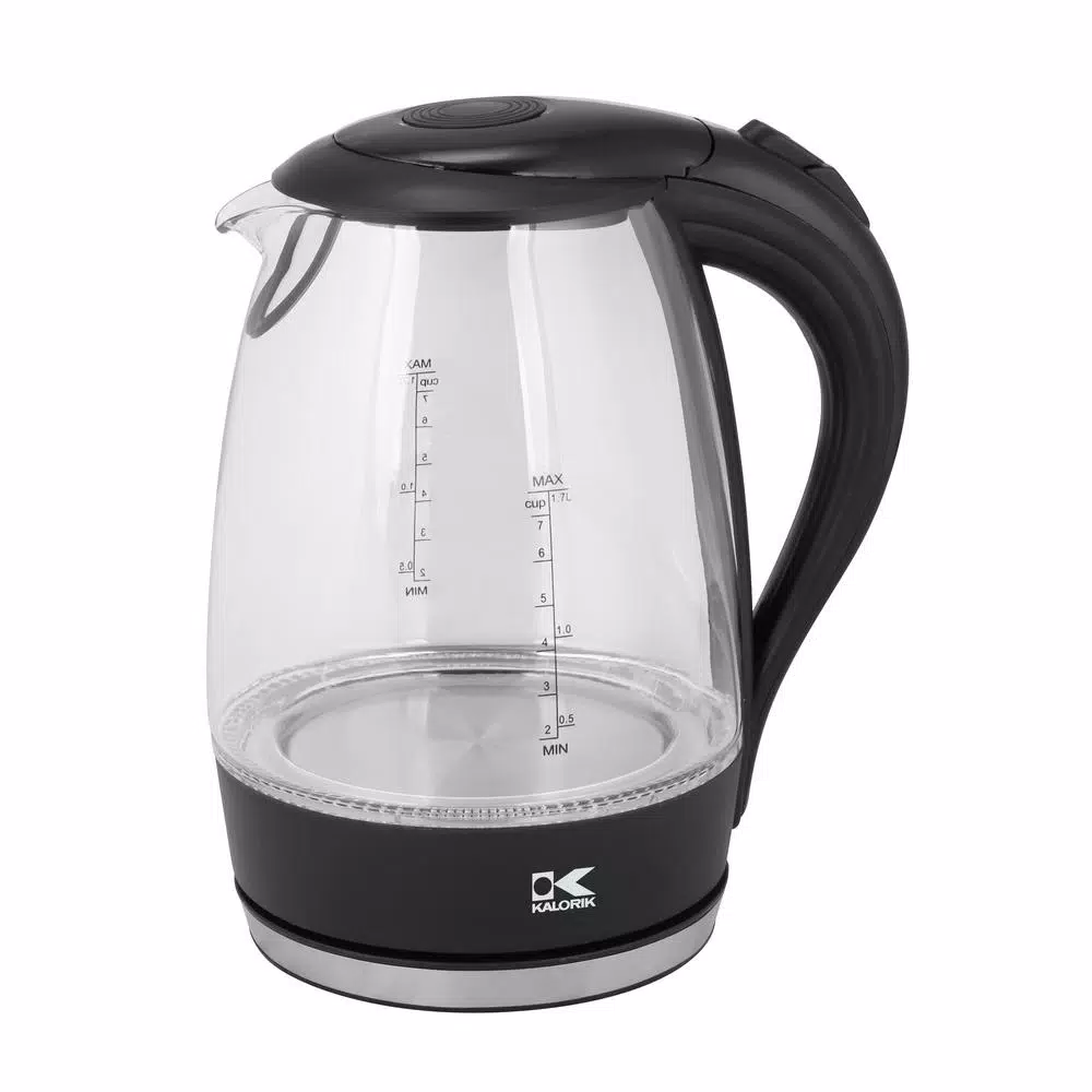 The Kalorik Black and Stainless Steel Cordless Jug Kettle makes boiling easier than ever! In a matter of minutes (faster than stovetop or microwave), enjoy your favorite tea, hot chocolate, instant coffee, soup and more. With the auto shut-off function, the kettle will never boil dry. The LED blue illumination makes this jug kettle the perfect complement to any kitchen decor.