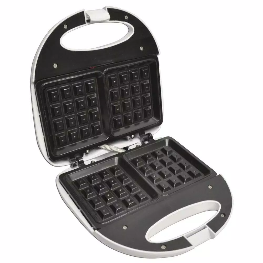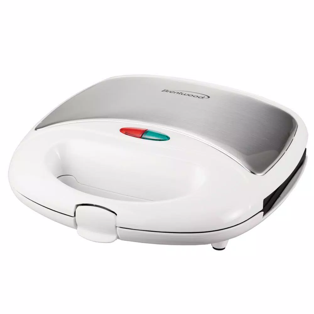 The powerful 750 watt Brentwood Appliances TS-242 Nonstick Dual Waffle Maker cooks 2 perfect waffles in just 6 to 10 minutes! Waffles slide right off of the easy to clean nonstick plates. Indicator lights show power and ready status so you know when the white waffle maker is ready to accept the batter. This waffle maker even stores upright for compact storage.