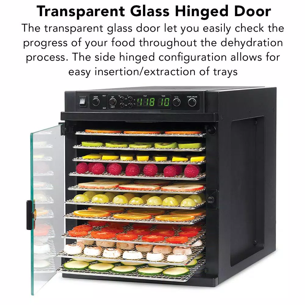 Food Processing Tribest Sedona Express 11-Tray Black Stainless Steel Food Dehydrator With Built-In Timer