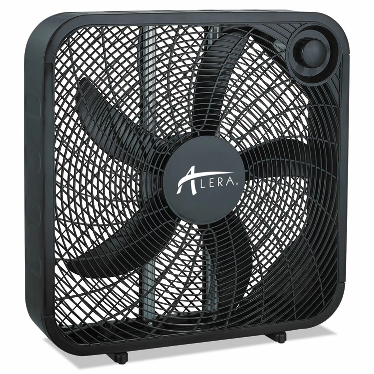 Large five-blade design pushes a large flow of air out to keep things cool. Slim-profile box fan takes up less space than conventional designs. Lightweight but stable base design ensures it is easy to setup anywhere. Features three-speed settings and a convenient integrated carry-handle. Large rotary knob for easy adjustments.