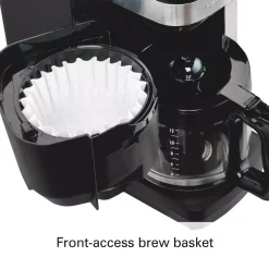 The Koblenz 4-Cup Kitchen Magic Collection Coffee Maker is simple and efficient but also capable of delivering up to 4-cups of delicious coffee. You will appreciate the convenience features like the vertical storage base, locking clip for maximum security and automatic thermostat. This coffee maker allows you to easily clean with non-stick coating.