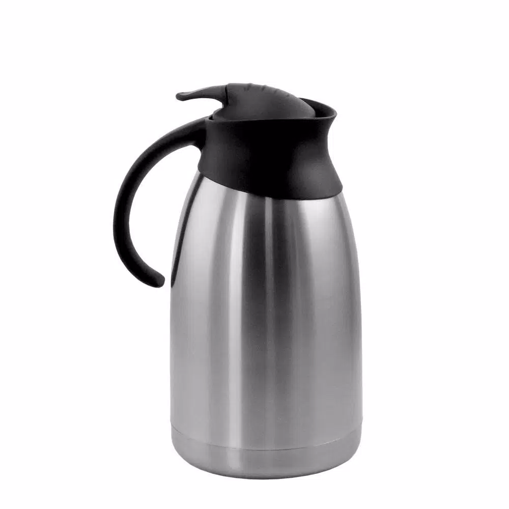 Keep your drinks hot with MegaChef 2L Stainless Steel Thermal Beverage Carafe for Coffee and Tea. This versatile and convenient hot beverage carafe is a great tool to have on hand for all gatherings and events. This thermos is equipped with stainless steel insulation, ensuring beverages stay at their desired temperature for hours. The thermos is also equipped with an easy to pour dispenser that can securely be opened and closed using the single touch safety latch attached to the lid, securing the hot liquids and minimizing spills. Thermos’ screw off top can be opened with ease and stays on securely. The thermos also comes with a 5 in. non-burn handle attached for easy transportation.
