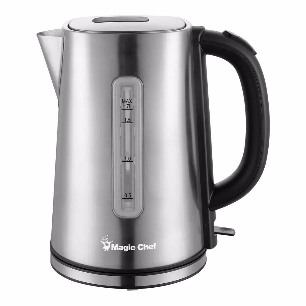 Boil water the easy and convenient way with the Magic Chef 7.2 cup (1.7 L) stainless steel electric kettle. It is the perfect solution for boiling water for teas, hot chocolate,instant soups, ramen noodles. The kettle is easily removed from its roating pwer base for pouring. Its push button lid makes it very easy to fill. The electric cord is retractable. Automatic shut off and boil dry shut off for your safety.