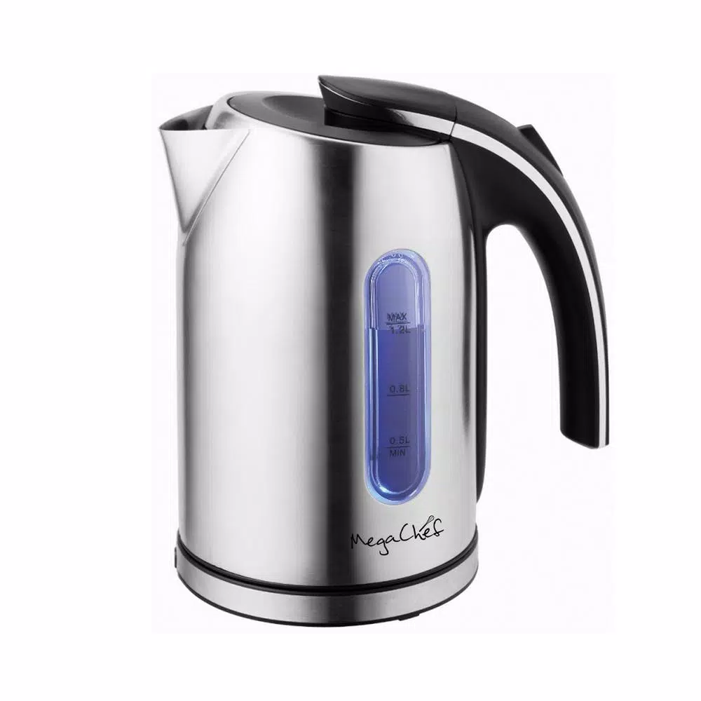 Make all your favorite hot beverages and more with the Mega Chef 1.2 l. Stainless Steel Electric Tea Kettle. This kettle has a sleek design with a stainless steel finish that looks great in any kitchen. Heat up water worry free with the auto shut off feature. Clean up is a breeze with the removable and washable filter, and worry less about messes with the drip-free spout.