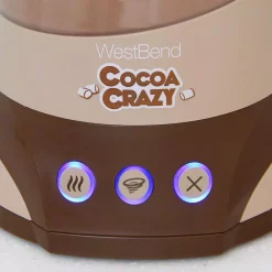 The West Bend 32-Ounce Cocoa Crazy is the perfect tool for everyone who loves hot beverages. Make instant coffees, teas, cocoas, and more with the push of a button. Mix, heat, and froth in one compact machine, enough for 4 servings. Small footprint means this hot drink maker is perfect for small kitchens dorms or offices. The Cocoa Crazy includes the “Perfect Temperature” feature so every cup comes out perfectly. If your hot drink cools down the Cocoa Crazy will automatically re-start and heat back up to the “perfect temperature.” The heating plate is non-stick for easy cleanup, recipes included.