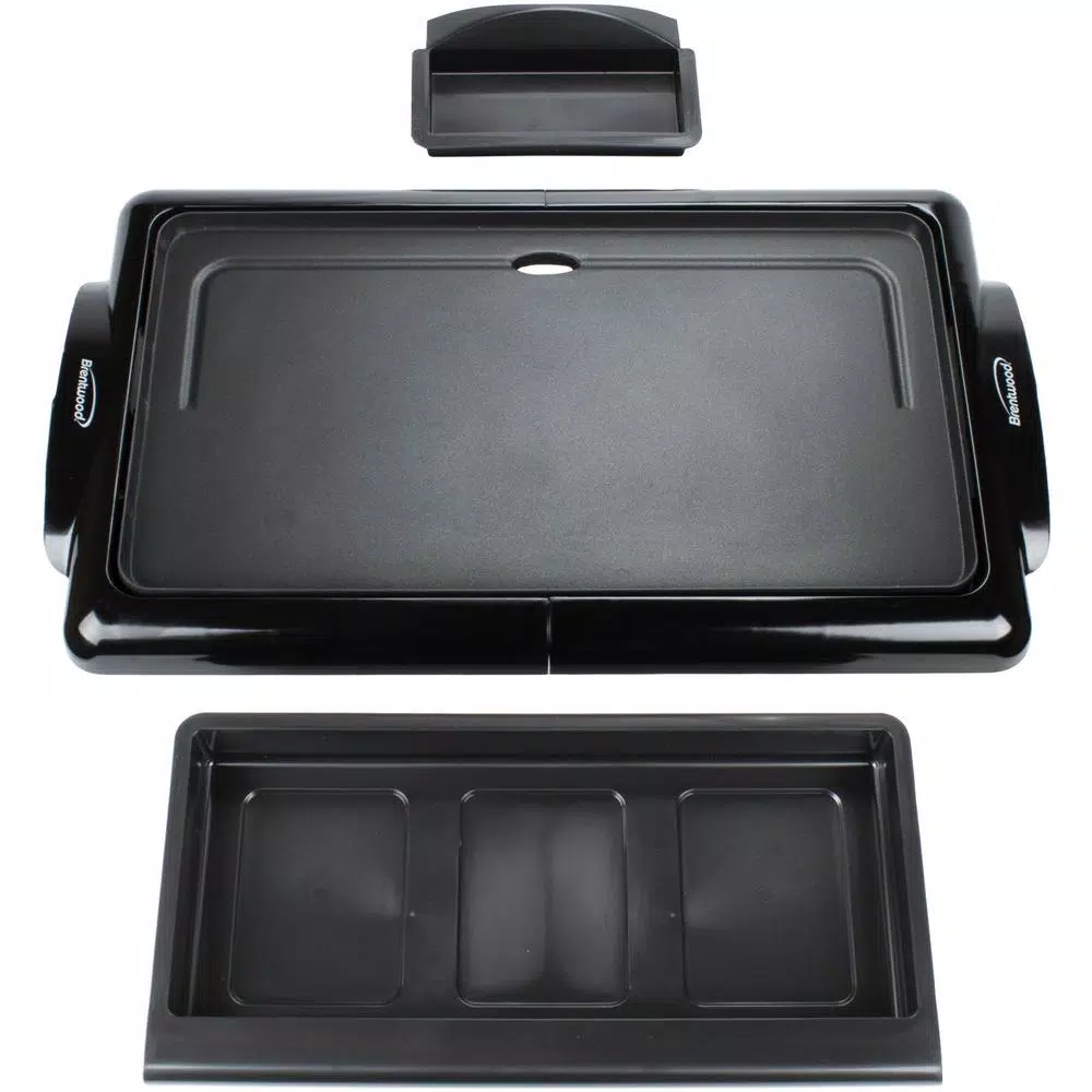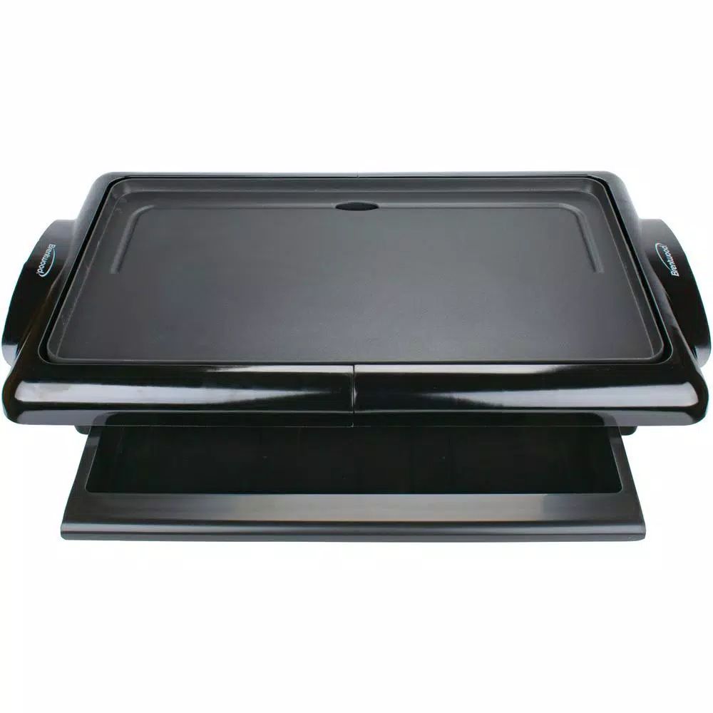 The powerful Brentwood Appliances’ TS-840 1400-Watt Nonstick Electric Griddle measures 10 in. by 20 in. enough grill space to cook food for the entire family Enjoy perfect pancakes, eggs, bacon and more. Keep what you’ve just cooked warm in the convenient warming drawer as you work on the next batch. The handles remain cool to the touch and the drip tray is under the griddle.