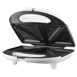 The Brentwood Appliances TS-240B Nonstick Compact Dual Sandwich Maker grills 1 to 2 sandwiches at a time. The power on/preheat indicator lights, safety lock lid and the cool-touch handles keep the operation safe. The TS-240B’s nonstick coated cooking surface will make it easy to remove your toasted delectables. The white sandwich maker also has built-in cord storage and stands upright for easy, compact storage.