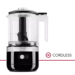 All the Power You Expect, without the Cord. Go where ambition takes you with the Cordless Food Chopper from KitchenAid. Designed with a powerful rechargeable Lithium Ion Battery, the new cordless food chopper delivers optimal runtime and performance, so you can cook wherever*, whatever, and however you choose. Chop up to 40 onions on a full charge** *Indoor use only. **Based on onion size of 90 – 110 grams.