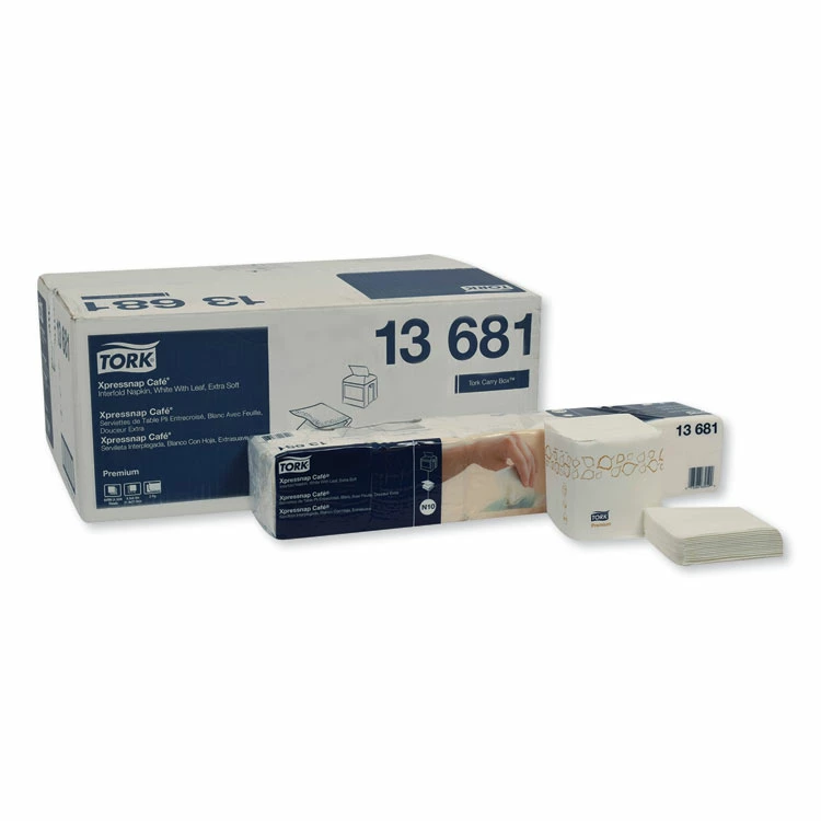 Serve your guests a memorable experience! Tork® Premium Extra Soft Xpressnap® Dispenser Napkins’ ONE-AT-A-TIME dispensing design ensures that patrons use fewer napkins and touch only the napkin they use, improving hygiene and reducing consumption by at least 25%, when compared to traditional dispenser napkins. Unique case pack solution, each bundle is packaged in poly wrap for improved hygiene and handling. Featuring the Tork® Easy Handling® carry box.