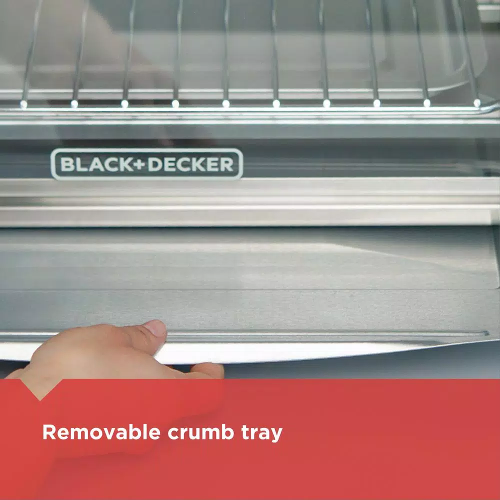 - Removable crumb tray the tray slides in and out to easily remove crumbs before they burn in the bottom of the oven